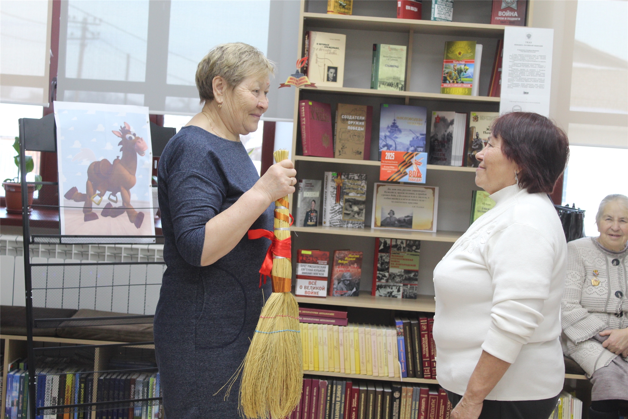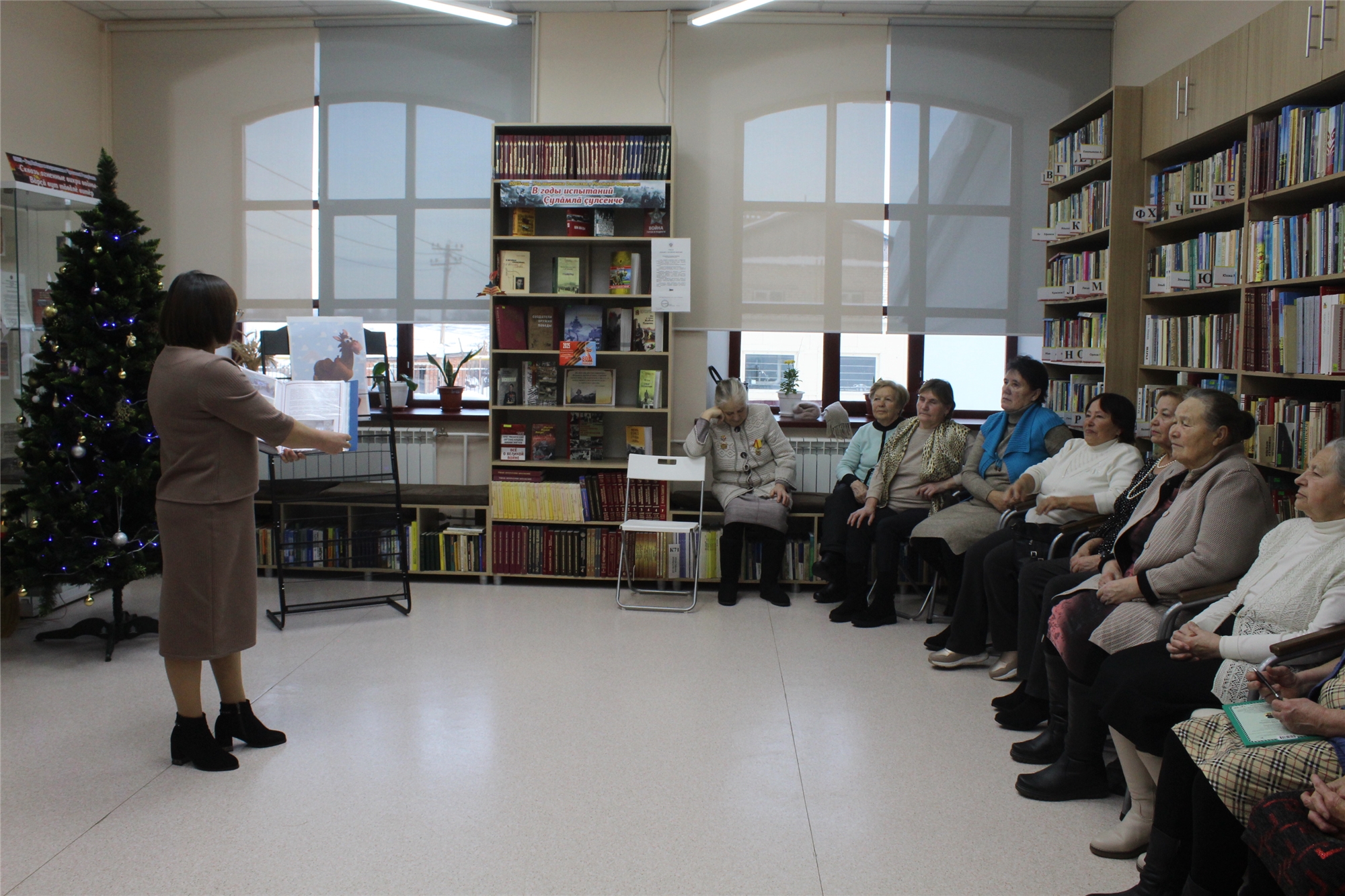 Главный библиотекарь отдела обслуживания Лариса Михайлова, которая является руководителем клуба «Забота», отчиталась перед своими читателями о проведённых в 2025 году мероприятиях в рамках данного клуба, ознакомила их с планом на этот год и предоставила слово начальнику Шихазанского территориального отдела Владимиру Дмитриевичу Русскову. Он от всей души поздравил присутствующих со Старым Новым годом и пожелал им крепкого здоровья, благополучия в семье. Владимир Дмитриевич также поздравил председателя Совета ветеранов Шихазанского территориального отдела Зою Васильевну Александрову с вручением ей Почётного знака Всероссийской общественной организации ветеранов (пенсионеров) войны, труда, Вооружённых Сил и правоохранительных органов в соответствии с Постановлением Президиума Совета Всероссийской организации ветеранов от 25 ноября 2025 года. Он пожелал ей дальнейших успехов в развитии ветеранского движения.