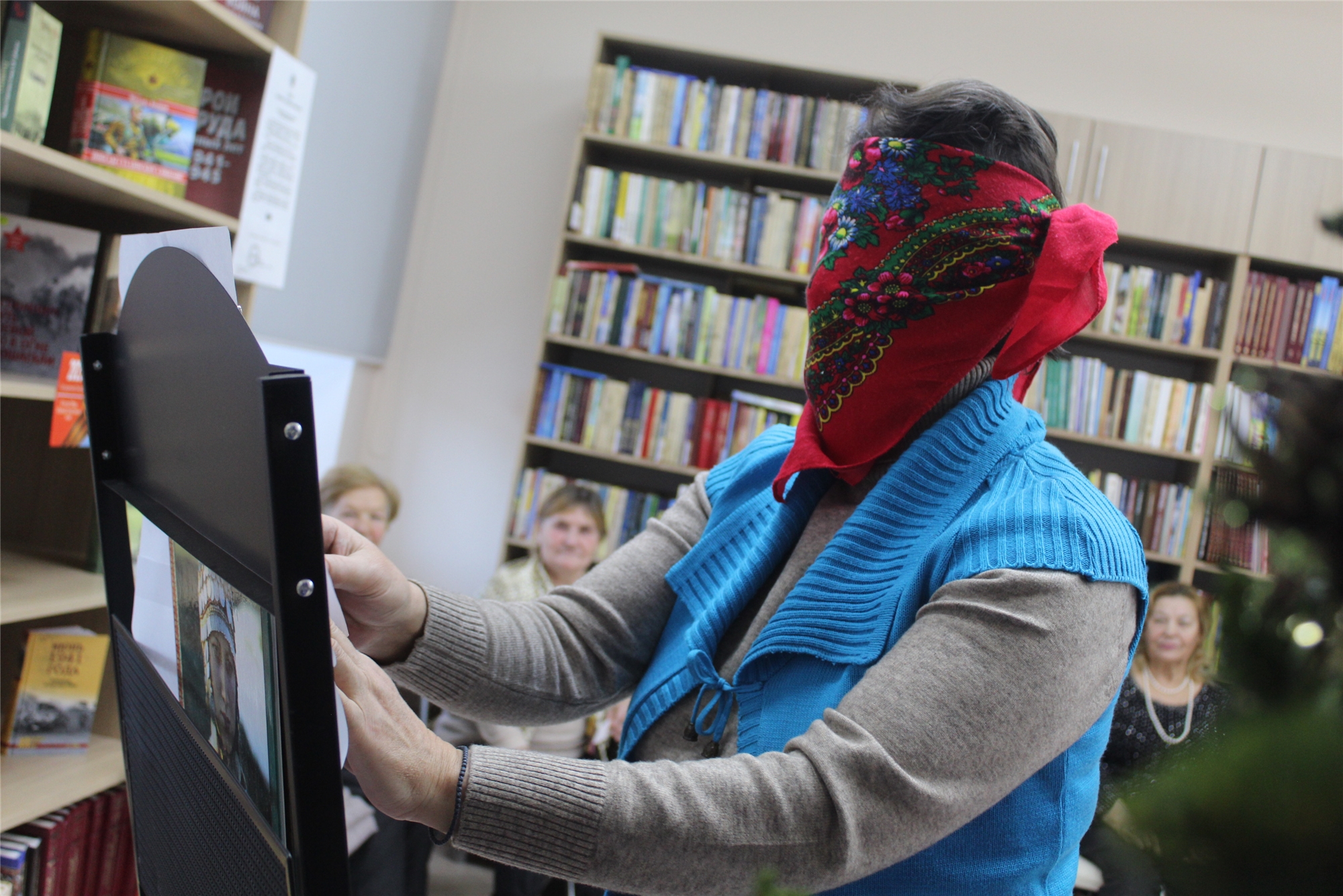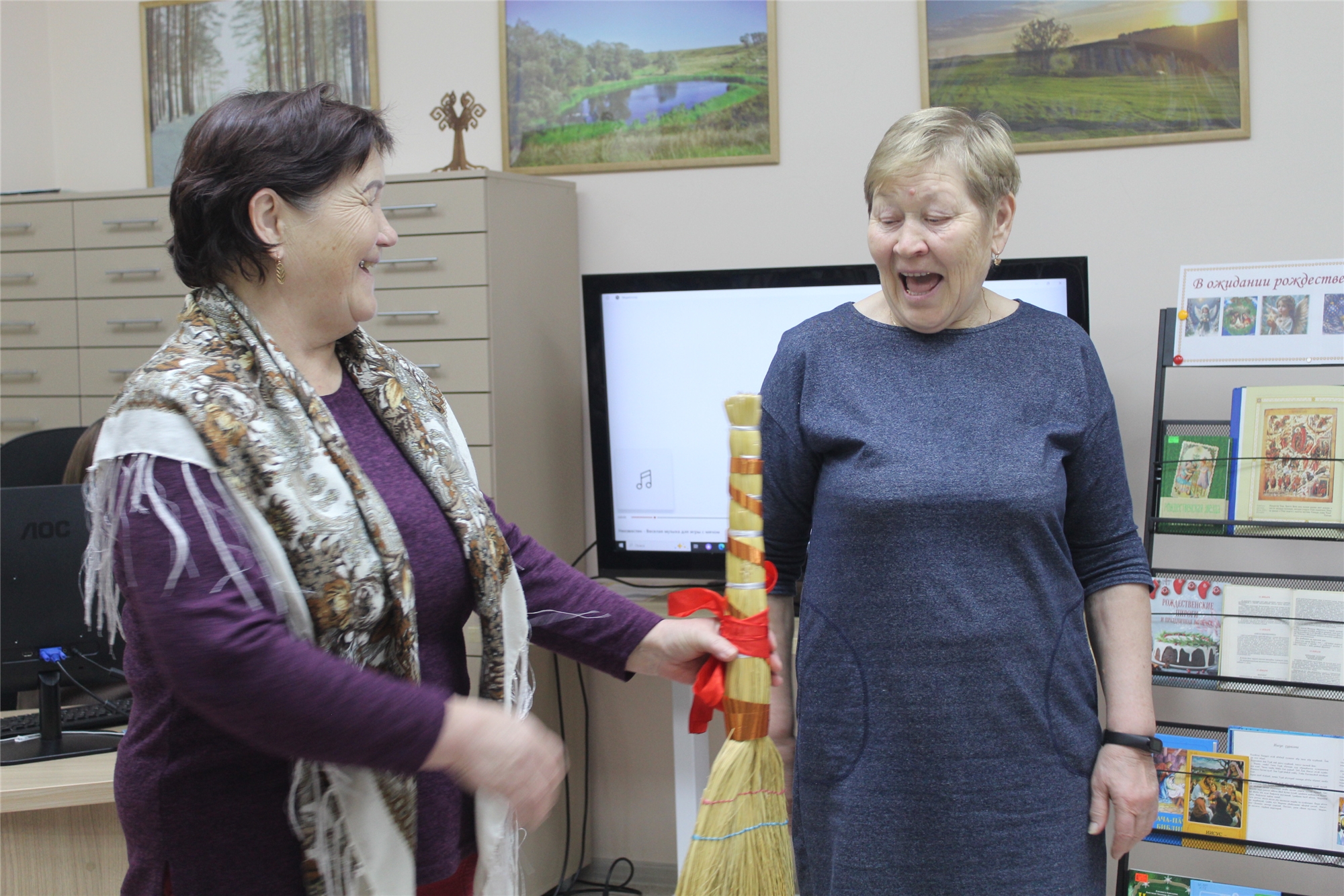 Затем Лариса Ардалионовна вкратце ознакомила гостей с традициями и обычаями проводимых на Руси новогодних святочных вечерах, празднуемых в течение двух недель, провела ряд игр и конкурсов: «Шуточное гадание», «Примёрзли», «Ведьмина метёлка», «Слово в слове», «Узнай сказку по отрывку», «Новый год наоборот», «Прилепи лошадке хвост». Мероприятие украсили видео, в которых поются песни «Коляда», «Старый Новый год» и другие святочные произведения. Завершили конкурсно-игровую программу праздничным чаепитием.